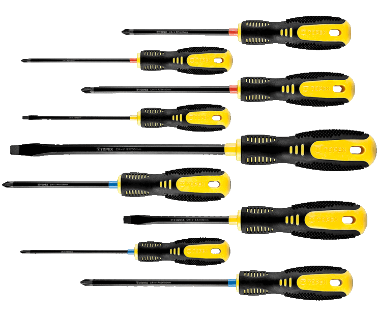- A TOPEX csavarhúzó készlet kiválóan beválik szerelési, barkácsolási munkákban.