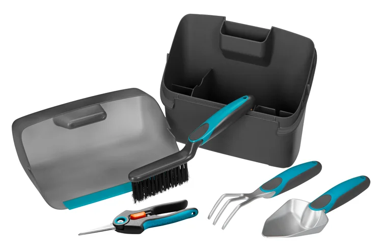 Főleg erkélyeken, teraszokon használható szerszámkészlet, tárolódobozzal.